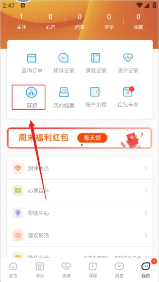 2、点击 “我的”,可查看个人相关信息,管理已有的咨询、课程等内容。